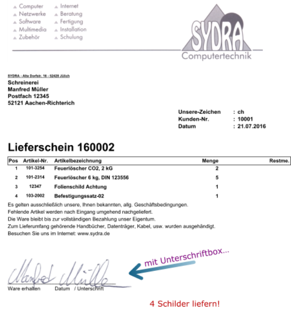 Auftrag, Lieferschein, Prüfprotokoll, usw. mit Unterschrift archiviert und/oder gedruckt…